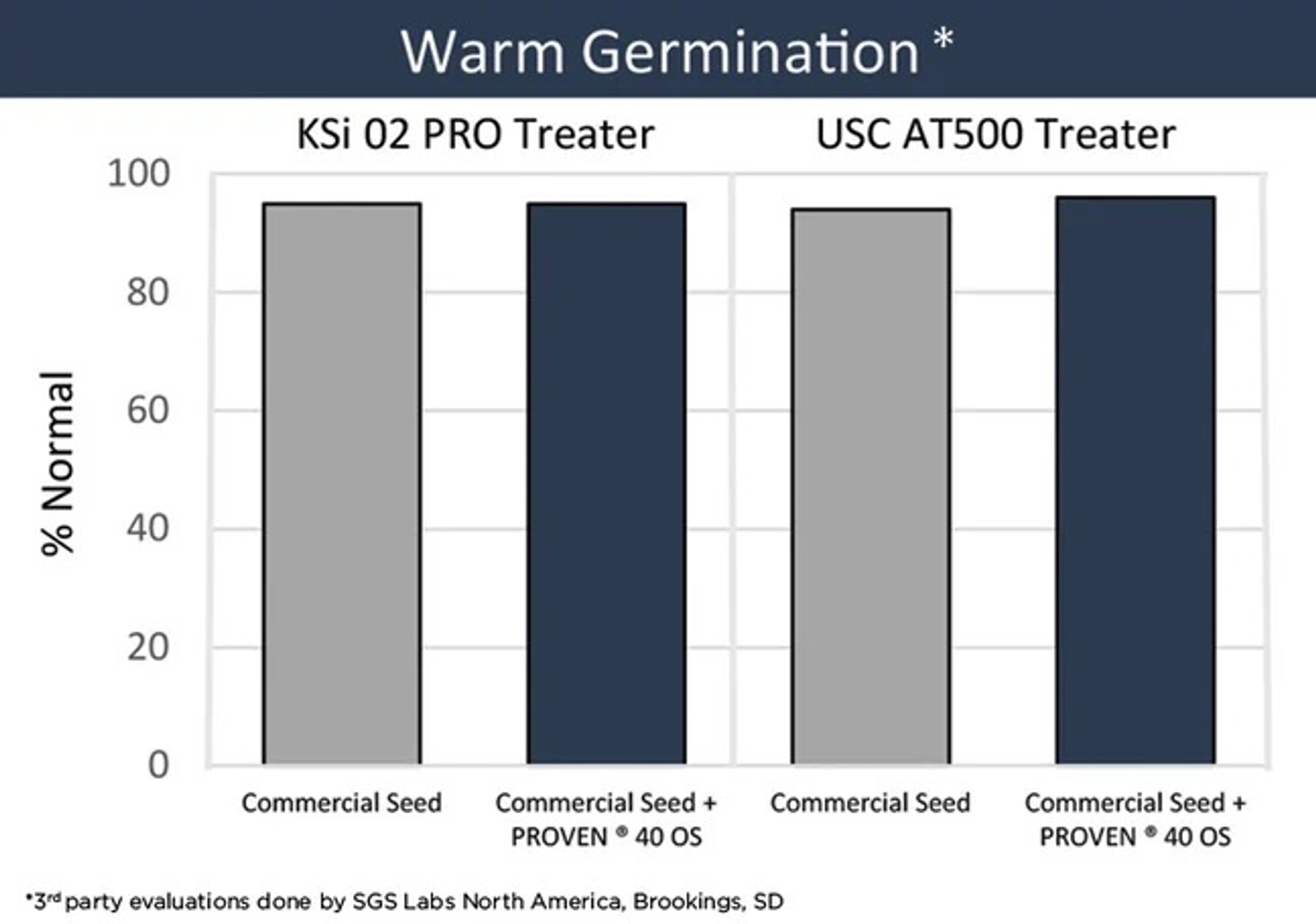 - Seed Safety – when applied to commercial corn seed, PROVEN® 40 OS has no adverse effects on seed germination or corn stand establishment
